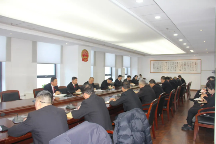 1月12日上午,肇东法院召开了开年第一次审判执行质效工作部署会,旨在总结经验科学谋划新一年工作,为审判质效提升奠定坚实基础。本次会议由院党组书记、院长郭延泽主持,院领导班子成员、各部门负责人参会。